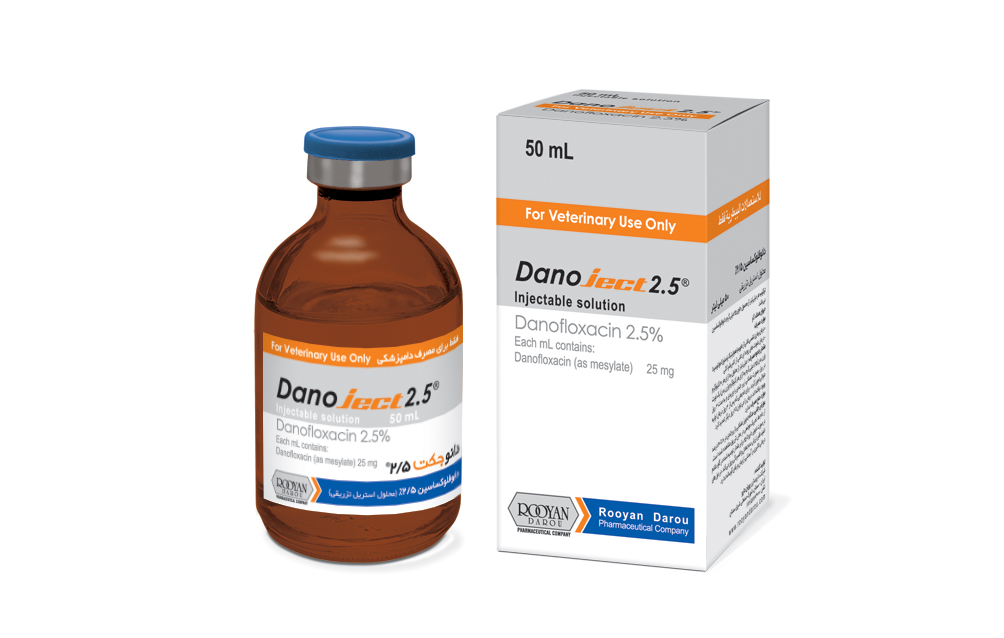 | ترکیب | هر میلیلیتر از محصول حاوی 25 میلی گرم دانوفلوکساسین (مزیلات) میباشد. |